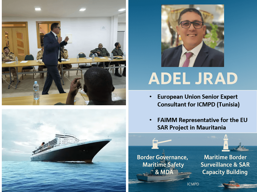 Since 2025, I have been working directly with the European Union as a Senior Expert Consultant for ICMPD, supporting EU-funded programs on border governance, maritime safety, and MDA enhancement in Tunisia. I also serve as the Representative of FAIMM and Training Coordinator for the EU-funded project in Mauritania focused on maritime border surveillance and SAR capacity building.